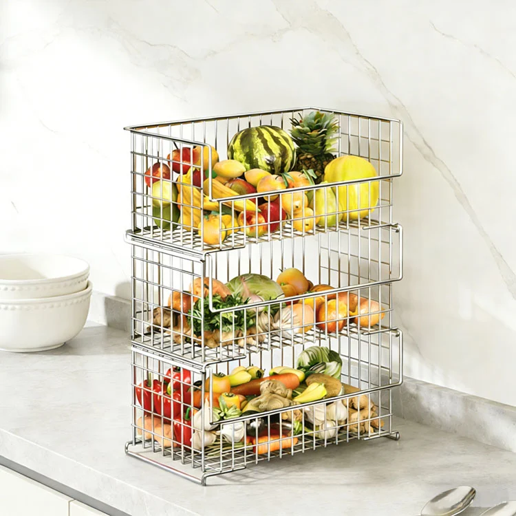サイズの利点: 単一のバスケットのサイズはほとんどのキャビネットの奥行きに適しており、積み重ねた後の高さは制御可能です。狭いキッチンでも無理なく収納できます。